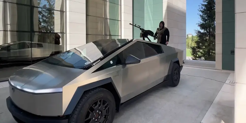 卡德罗夫周四声称,他在8月份展示过的装有机枪的Cybertruck已经被远程锁定了,已经无法使用,但车辆在战斗中表现良好。