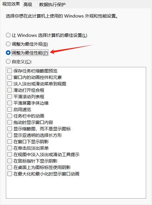 选择最佳性能,点击确定。