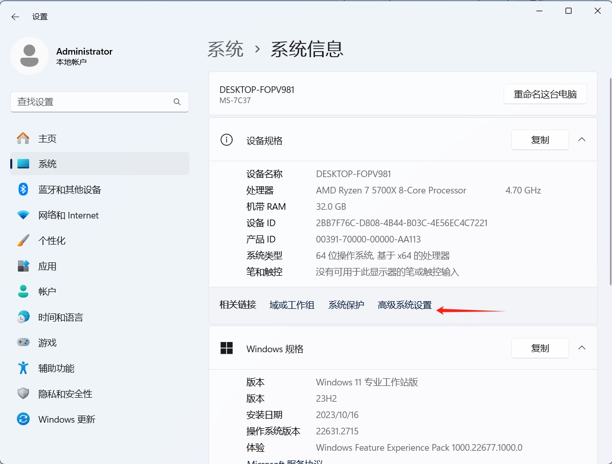 点击高级系统设置。