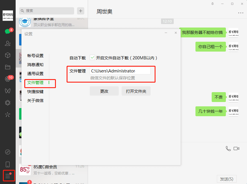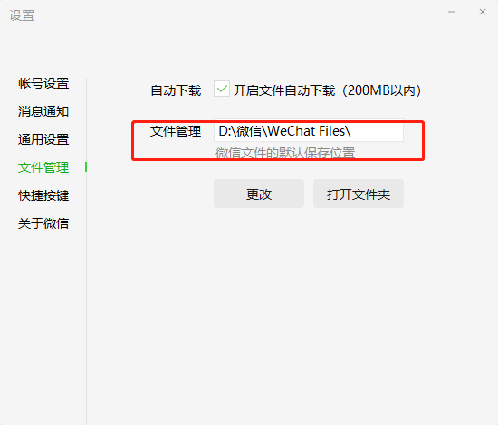 在微信–设置–文件管理中,将路径更改到新C盘用户,我的文档下面。