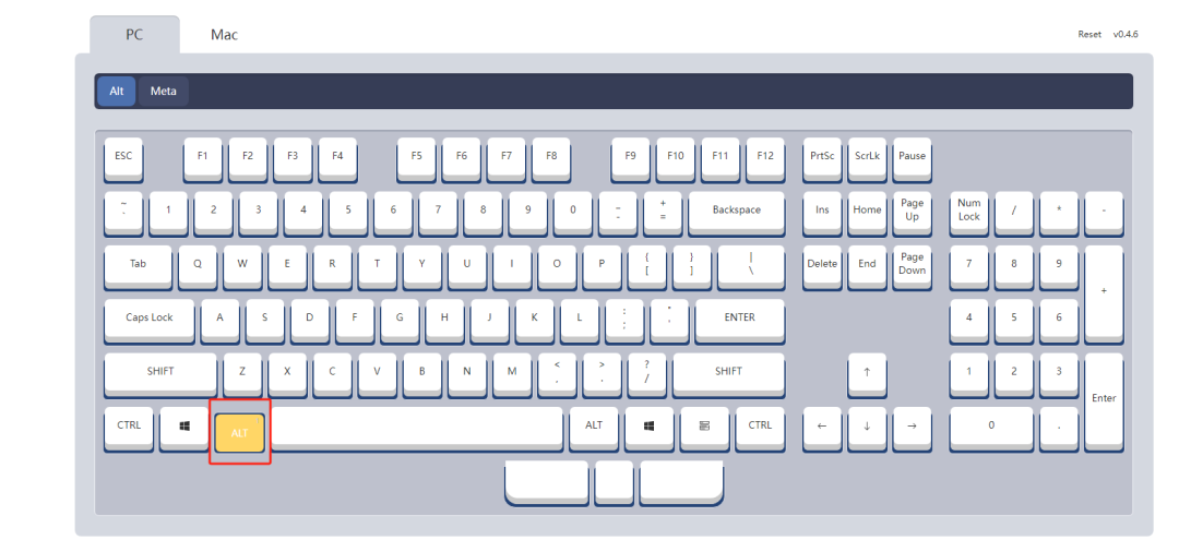 假如,我现在将键盘上的Alt键盘按住,这时可以看到Alt被按住了。