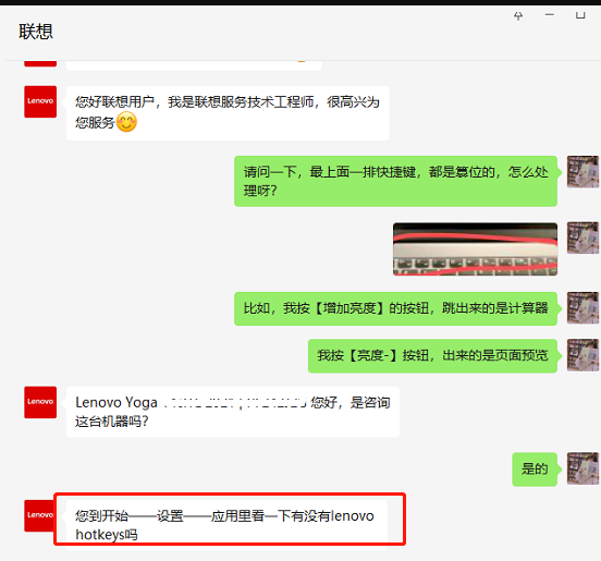 于是找了厂家问一下,到底是什么问题,找了联想的客服,给出来的答案是找到lenovo hotkeys软件重新设置。