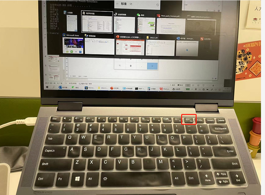 到朋友现场,朋友的公司新发的笔记本电脑,如果朋友现在如果按f12键,而不增加屏幕亮度,而是桌面跳出来计算器。