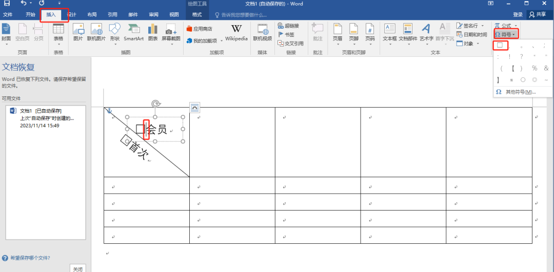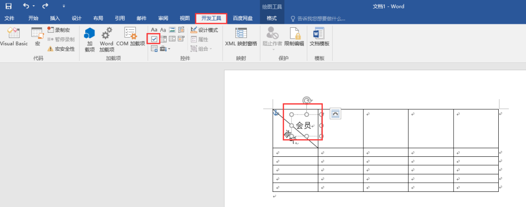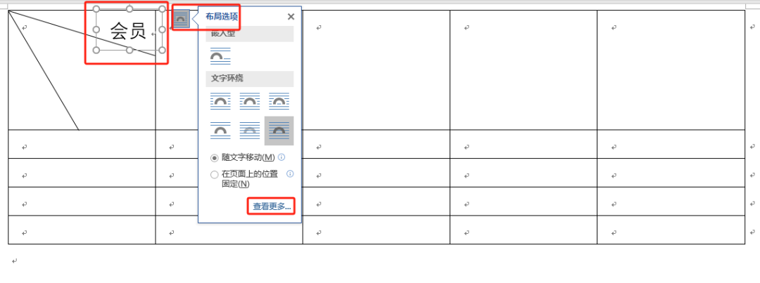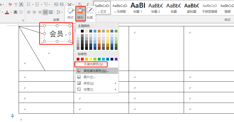 还需要,右击“会员”文本框,填充,选择“无填充颜色”,这时可以看到会员文本框就没有背景挡住,斜线了。