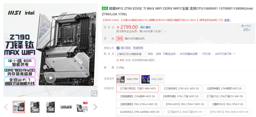 微星Z790 MAX系列主板中的MPG Z790 EDGE TI MAX WIFI刀锋主板现已上市,更多产品信息大家可以通过微星官网及相关电商平台进行了解。