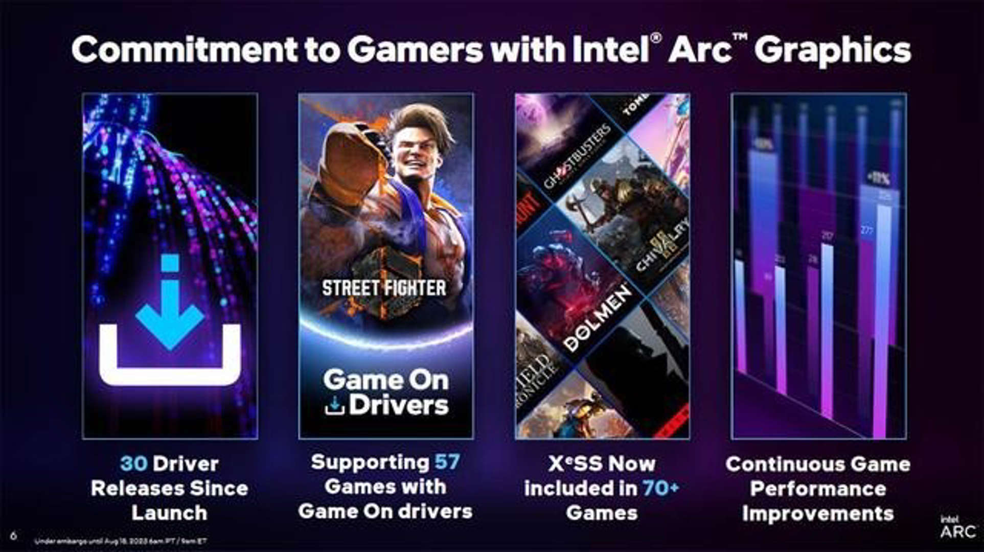其中4086驱动更新可以说是英特尔驱动史的里程碑,作为专门针对DX9游戏的鸡血驱动,这款驱动更新后让多款电竞游戏帧率平均提升幅度多达43%,英特尔显卡不能玩老电竞游戏的说法成为了历史。此后英特尔在Arc显卡上重构驱动,继续优化DX11和DX12游戏,从上面整体测试数据可以看出,Intel显卡经过不断的驱动优化,游戏实力表现越来越强了。