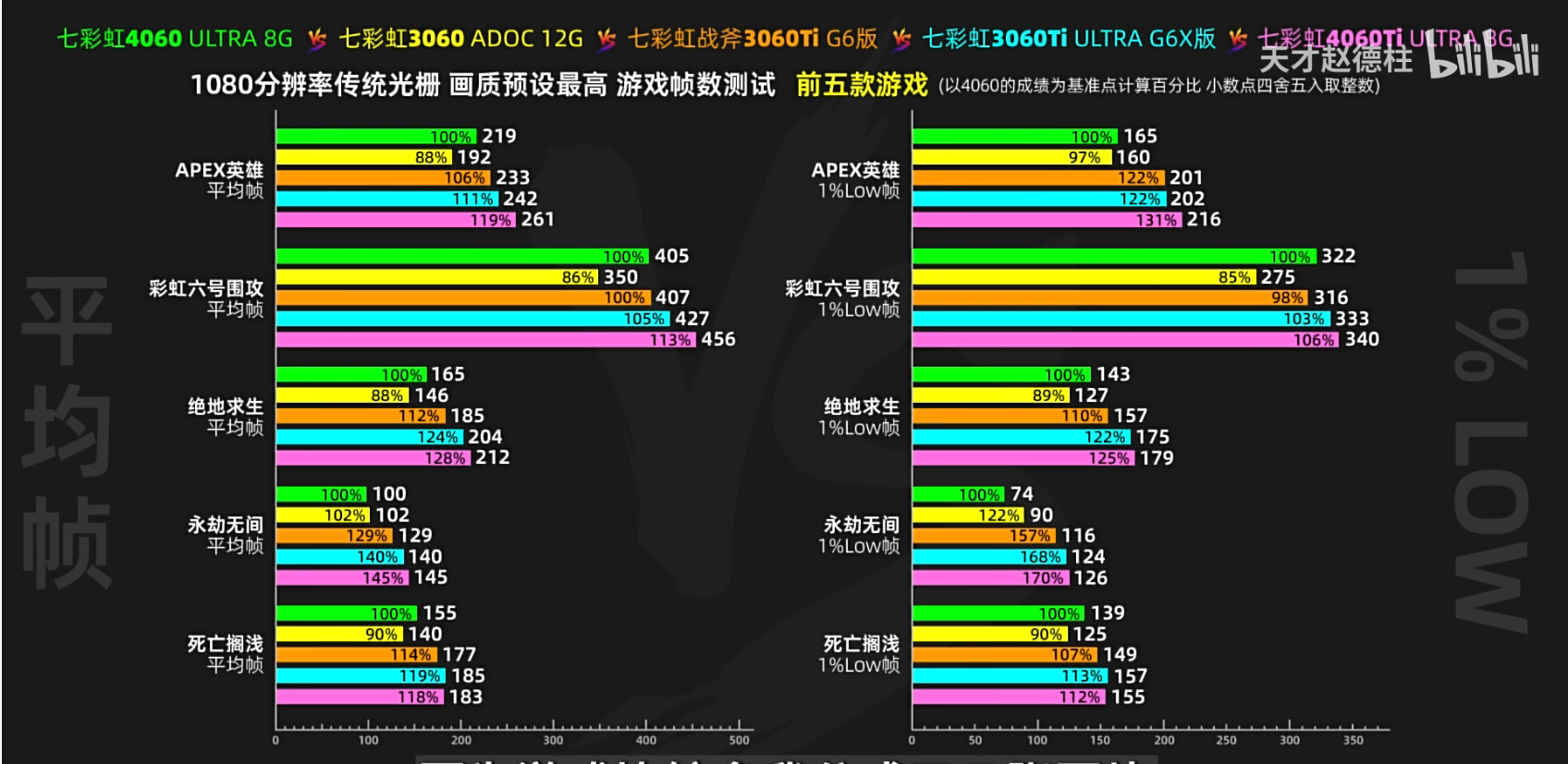几个UP主都是同一款测试产品:七彩虹4060 Ultra