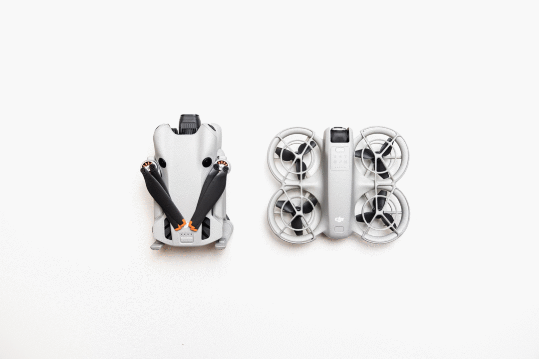 为了直观的展示DJI Neo的体积,我们找到了一台此前大疆在售的小体积无人机DJI Mini 4 Pro进行对比,可以清楚的看出DJI Neo的整机大小几乎和Mini 4 Pro折叠后的体积类似。而如果将Mini 4 Pro展开,体积就明显比DJI Neo要大非常多。