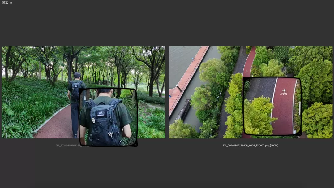 在使用“跟随拍摄”时,我们不需要对DJI Neo进行任何设置,它起飞之后就会自动识别拍摄目标并且直接进行拍摄跟踪。我在一个环境还相对复杂的公园环境中对DJI Neo对“跟随拍摄”进行测试,可以看到即便是我的不规则行进路线,不断的左拐右拐,DJI Neo也相当准确的对我进行了跟踪拍摄,在拍摄中几乎没有遇到丢失目标的情况。