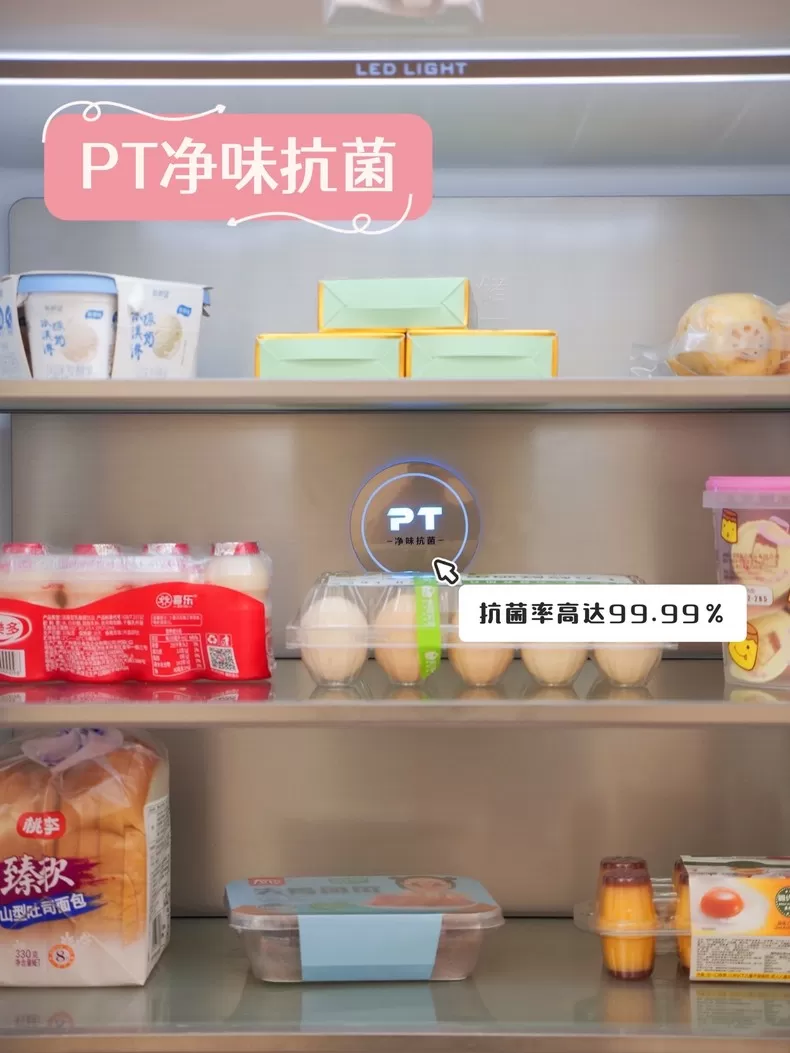 424L巨大容量,冷藏冷冻都能分类储存这款美的超薄冰箱BCD-424WFPZM(E)的容量有424L,冷藏有282L,设计了分区,有饮品架、可调食品 层架、果蔬 空间、调湿空间、变温空间;冷冻室也有142L,直拉式的大抽屉。容量大又有分类空间的冰箱就是好,放得多还能分类储存,拿取方便。现在我家的冰箱一打开感觉就像电视剧里的冰箱似的,食品排放整齐有序,满满当当,心情都变好了!