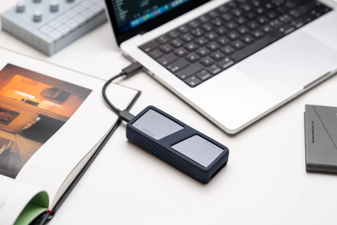 为了全面评估金士顿NV3固态硬盘在不同使用场景下的性能表现,特别是在移动存储中的应用,我选择了使用绿联USB4硬盘盒进行测试。USB4接口作为当前高性能外接存储设备的重要接口,具备更高的数据传输带宽(最高可达40Gbps),能够充分发挥NVMe硬盘的速度优势。通过搭配USB4硬盘盒,可以模拟实际的移动存储场景,如高速传输大文件或进行外部硬盘的数据备份等,从而测试金士顿NV3在这些情况下的表现。
