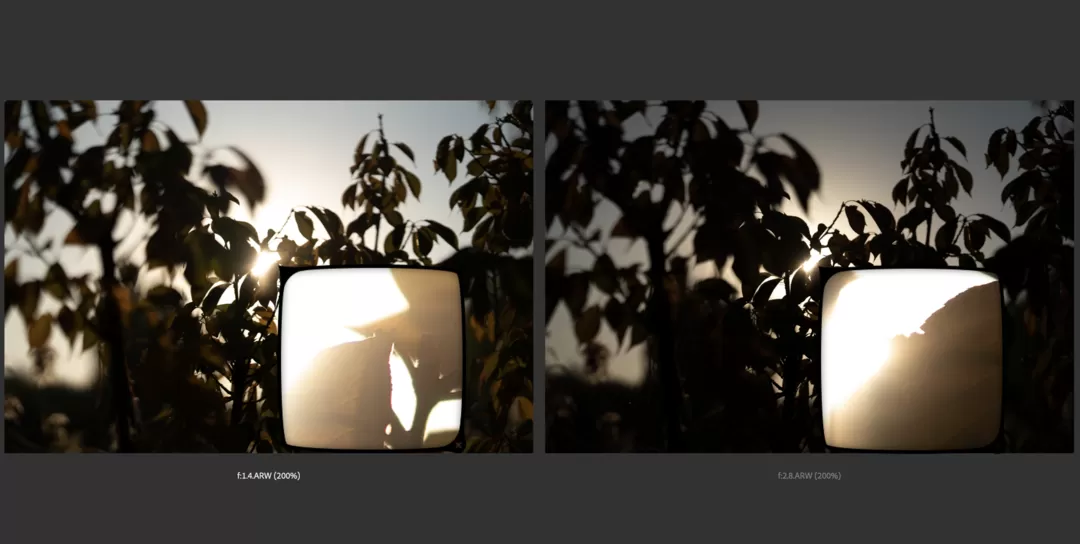 从上图可以看到 Sony FE 85mm F1.4 GM II 镜头在不同光圈下的眩光表现。在光圈全开 F1.4 时,镜头的眩光控制较好,细节和画面主体依然清晰,但会出现轻微的紫边,尤其是在高反差边缘区域。随着光圈收缩到 F2 和 F8,紫边现象明显减少,眩光也随之减弱,画面对比度和清晰度进一步提升。即便在最小光圈 F16 下,镜头依然能够有效控制眩光,没有明显的鬼影,而整体紫边现象则非常微弱,几乎不影响画质,整体表现令人满意。