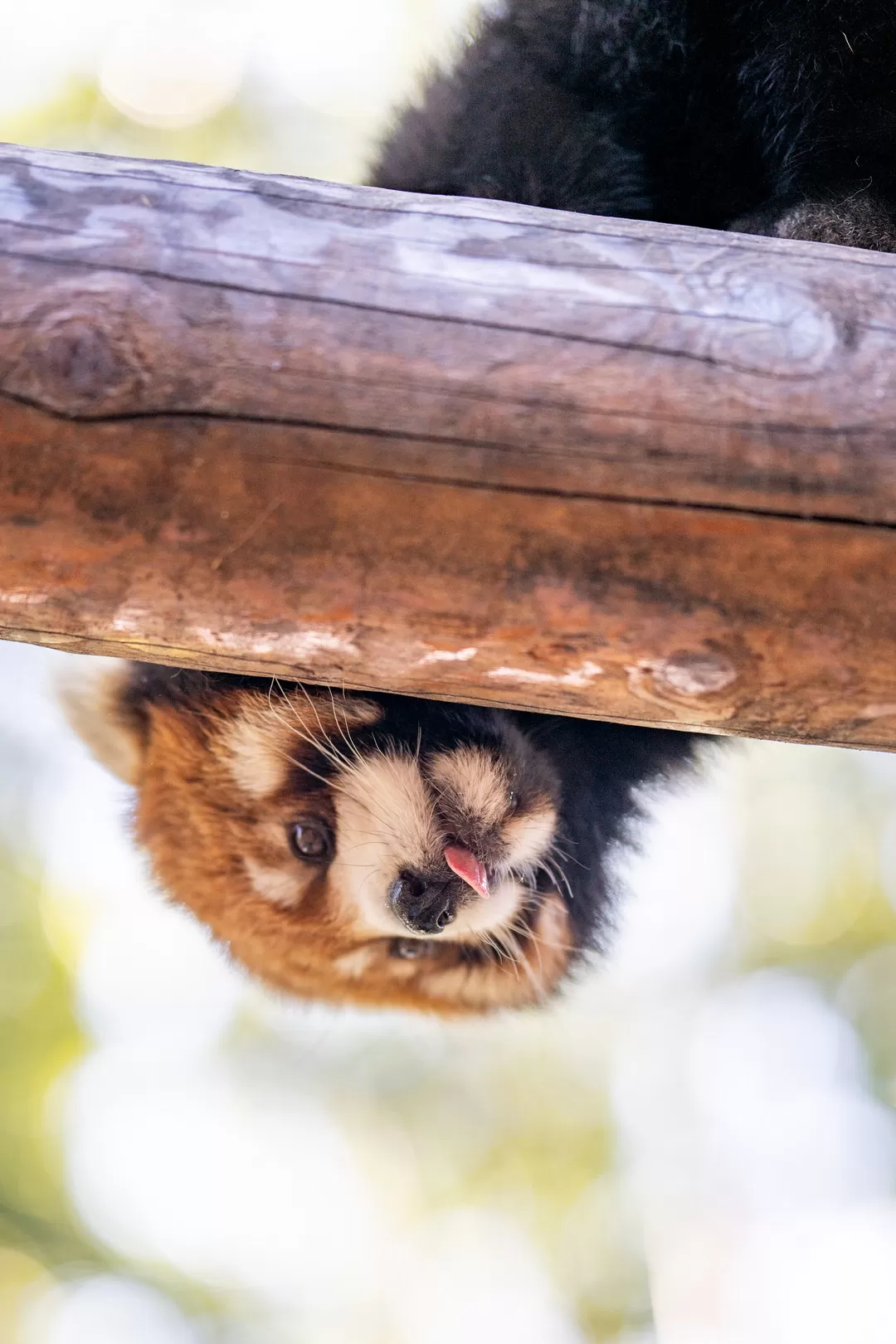 在另一张小熊猫倒挂吐舌的照片中,Sony FE 85mm F1.4 GM II 的对焦速度同样发挥了作用。小熊猫的动作和表情稍纵即逝,但得益于镜头的快速对焦,摄影师能够迅速捕捉到这一顽皮的神态,并将它呈现在照片中。此外,这支镜头的 F1.4 大光圈带来了美丽的背景虚化效果,将环境中的干扰元素自然融化在虚化背景中,从而让动物主体更加突出,画面层次更丰富。