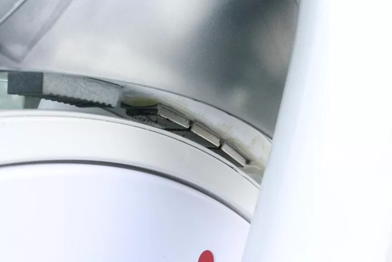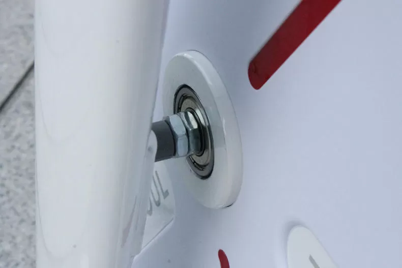 野小兽S1的飞轮采用了传统型的前置飞轮设计,通过观察飞轮上方的阻力装置,惊讶地发现,这台动感单车竟然使用的是磁控阻力系统,这样的配置在这个价位的动感单车上是极少见的。一般入门价位的动感单车多是采用物理摩擦阻力调节。和摩擦阻力调节系统相比,磁控阻力调节系统有着静音、低损耗、阻力调节精准的优势,一般都是应用在高端商用动感单车上。