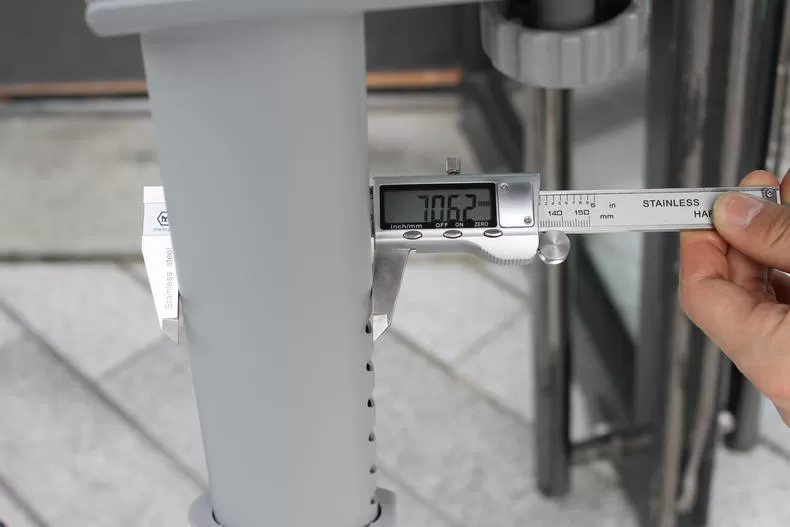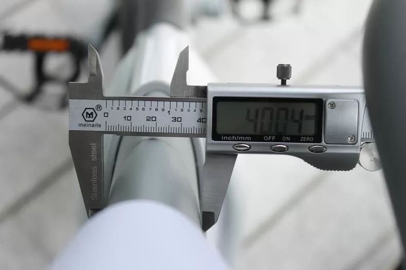 底座的可调节部分的宽度和厚度分别为7厘米和4厘米。总的来说,用料的管材无论在厚度还是材质上都显得诚意十足,整台单车摸起来相当厚实,摸起来质感满满。