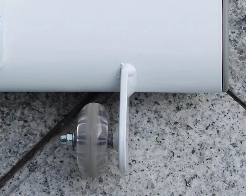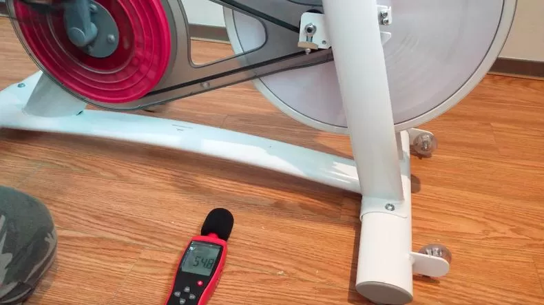 这台动感单车的前方还设置了两个滚轮,方便在搬运过程中进行移动。