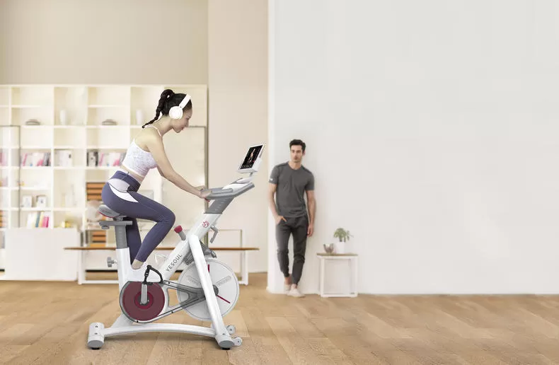 此外,这台动感单车在车头上方部分还安装了一块10.1寸的高清显示屏,里面搭载了野小兽自主研发的运动软件,机身需要插电进行驱动。当然,野小兽还为用户提供了性价比更高的不插电蓝牙版本—野小兽N1动感单车。
