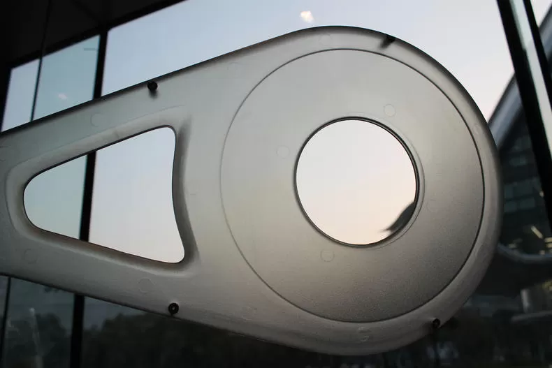 通过拆解,我们能看到。这台野小兽S1动感单车传动装置的护盖使用了半透明塑料材质,据说为ABS阻燃环保材料。