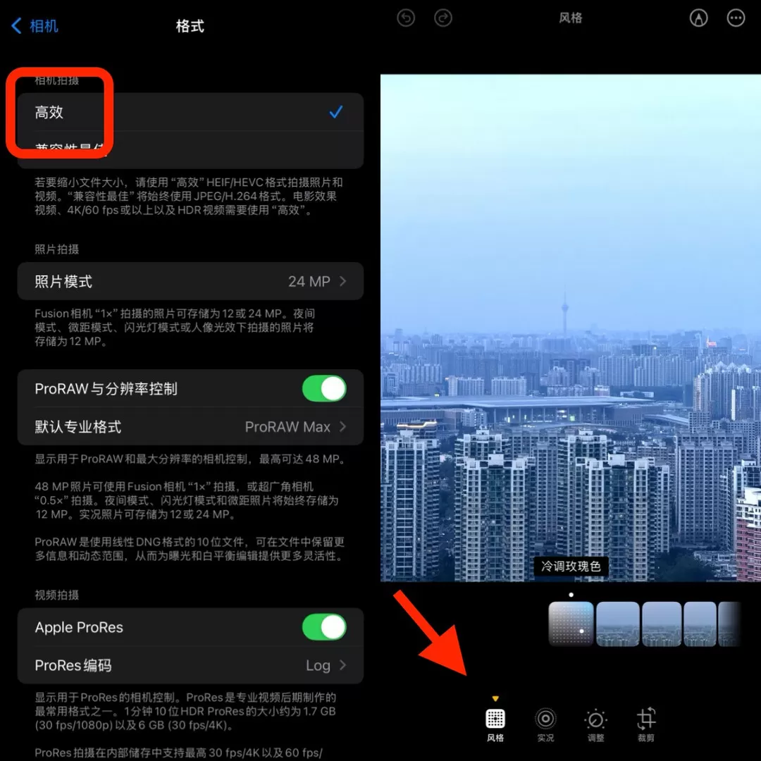 正如前文我们有介绍,如果你是iPhone 16系列用户,一定要在设置中把照片的记录格式改为“高效”,这样你就开启了实况照片的隐藏技能,即使是实况照片也可以通过最新的“摄影风格”进行调色。