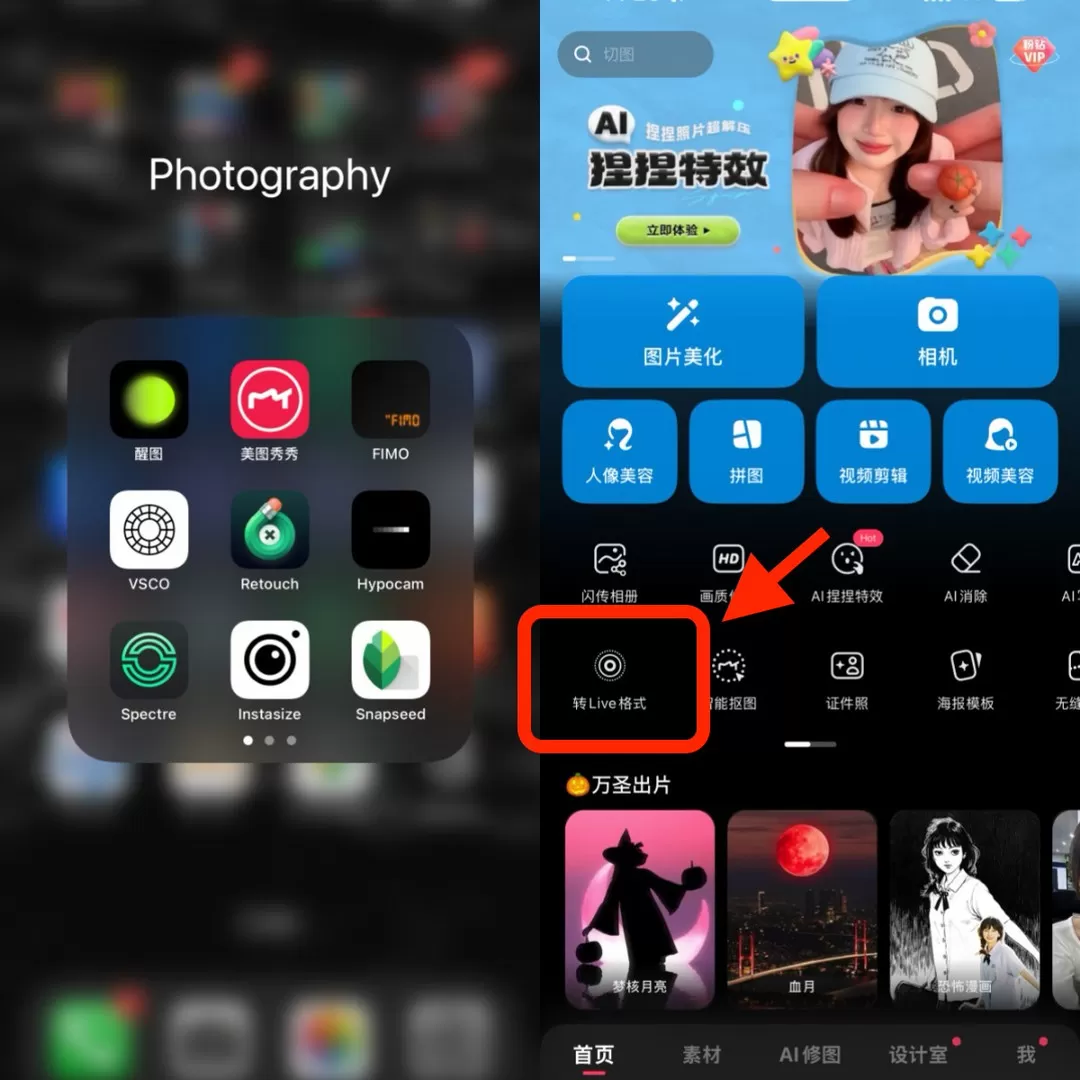 同样是动态内容,那么视频可不可以转换成实况照片呢?答案是当然可以。如果你只保存了视频但是又想要发布实况照片,或者觉得实况照片拍摄的段落无法满足你后期的挑选。那么要记住一个app——美图秀秀。