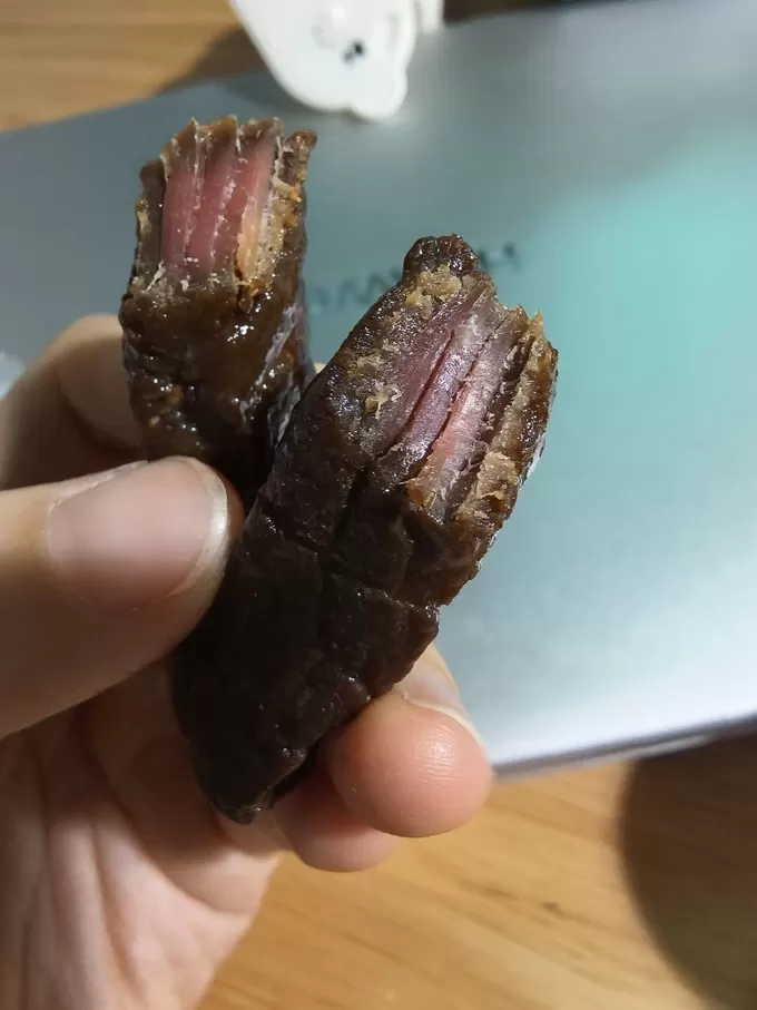 肉质纤维感很足,我觉得能吃出来牛味儿,我妈觉得没有,可能每个人口味不一样吧。