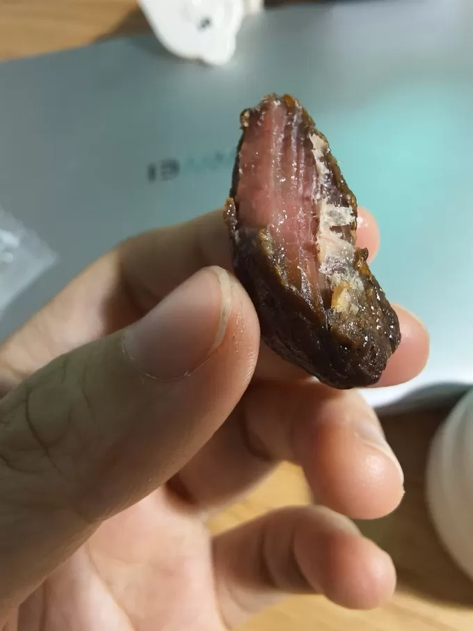 这个口感比我在天虹买的阿尔善那个要湿一点,但也不是有的那种五六成干,这个大概八分干。