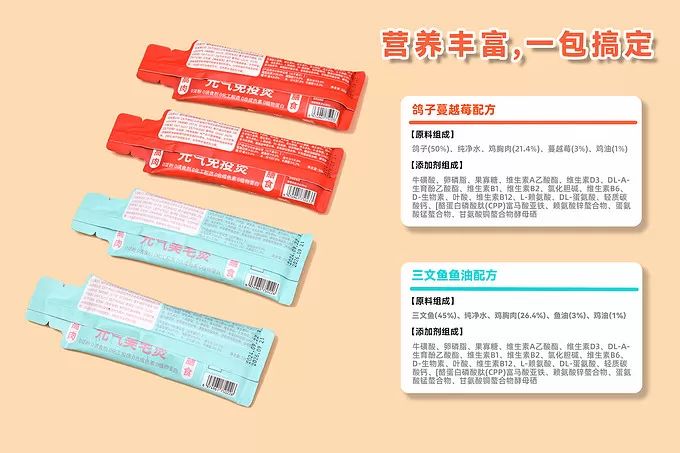 最近广州终于是迎来了冷空气,断崖式下跌的气温,也让我家猫咪出现了打喷嚏拉稀、体重下降、毛发枯燥、掉毛增加等情况。咨询兽医后,我得到的建议是除猫粮外,可以适当补充其他零食餐包喂食,增加营养摄入,提升猫咪的抵抗力。
