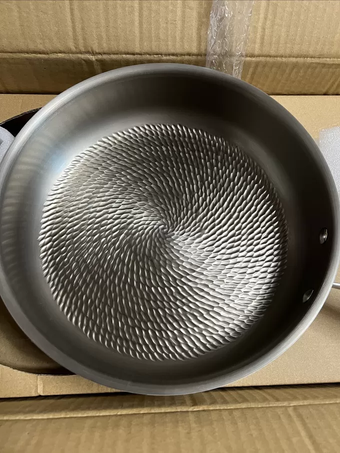 双十一过去蛮久了,期间买了不少东西,其中这一口平底锅使用下来感觉不错,外径28,内径26,材料由钛加铝加430组成具体多少比例未知,做工不错。底部是鱼鳞纹锤打设计一点不粘。内径小了点,我最好30到32,煎鸡蛋和牛肉饼,喷一点点油后一点都不沾。215的价格还能接受,强烈推荐