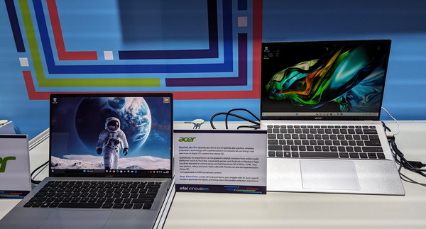 宏碁展示了用Core Ultra笔记本执行图像生成模型,可以在笔记本桌面屏幕中自动生成动态立体的航天员壁纸,还可以利用笔记本前置镜头来追踪用户的脸部轮廓,让壁纸可以朝着用户视角移动。 此外,还可以利用工具将2D平面图像转为3D裸眼立体图。