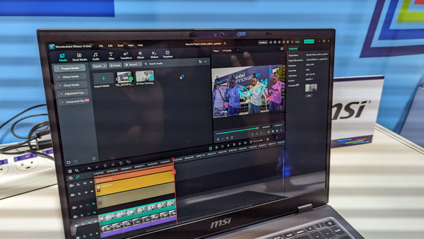 另一家笔记本厂商微星则是用Core Ultra笔记本展示影片后制的相关应用,如使用Wondershare Filmora视频编辑软件新增和预览新特效及背景图,过程全都使用NPU来执行。