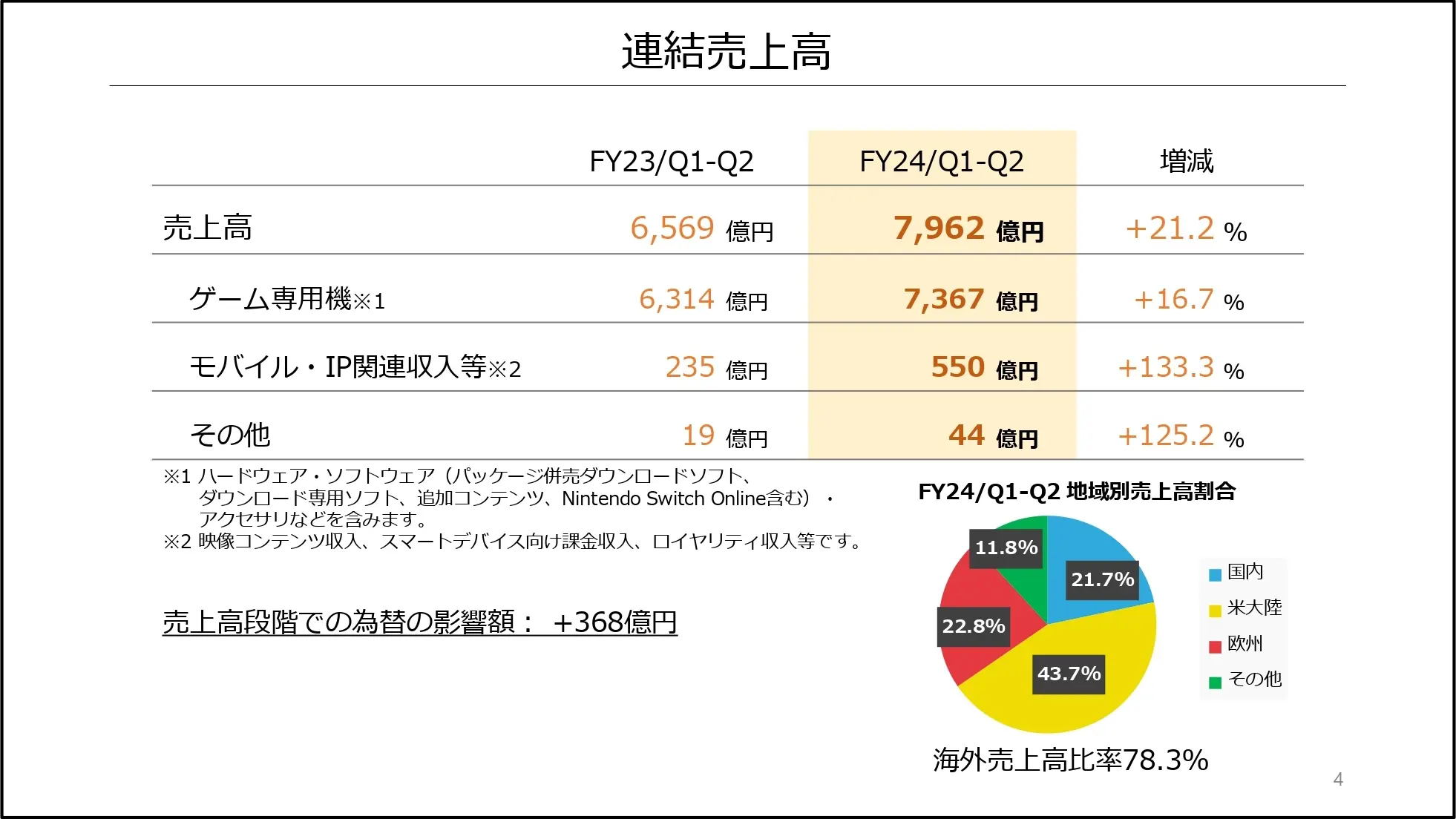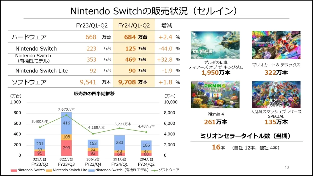 - Nintendo Switch 硬件销售台数 684 万台(+2.4%)