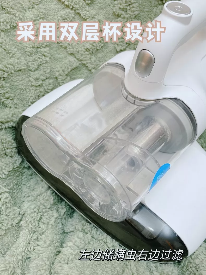 美的MX5除螨仪采用双层杯设计,左边储螨虫右边过滤,五重过滤不漏灰,更能避免二次污染。这个设计好,家里之前还买过单杯的除螨仪,使用过程中有时候会边吸边漏真的恼火,白干了!