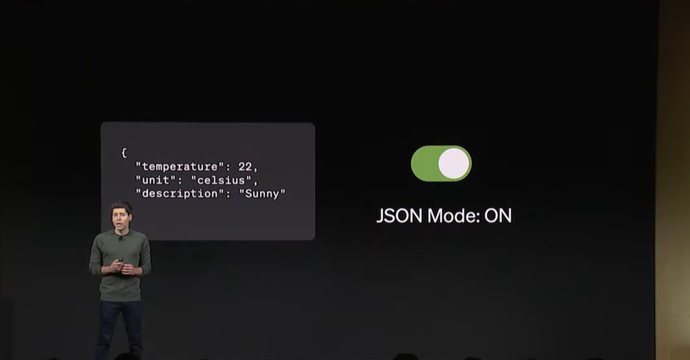 GPT-4 Turbo 支持了新的 JSON 模式,确保模型使用有效的 JSON 进行响应。 新的 API 参数 response_format 限制模型输出以生成语法正确的 JSON 对象。 该模式对开发者在聊天完成(Chat Completions)API 中生成 JSON 非常有用。