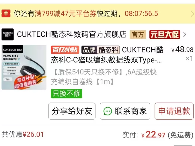 最后,40多块钱就能入手!这价格!这性能!这性价比无敌了好嘛!鉴于目前使用效果良好,我已经打算把手头的充电线都替换成它了!各位老铁有需求的话就冲吧!没毛病