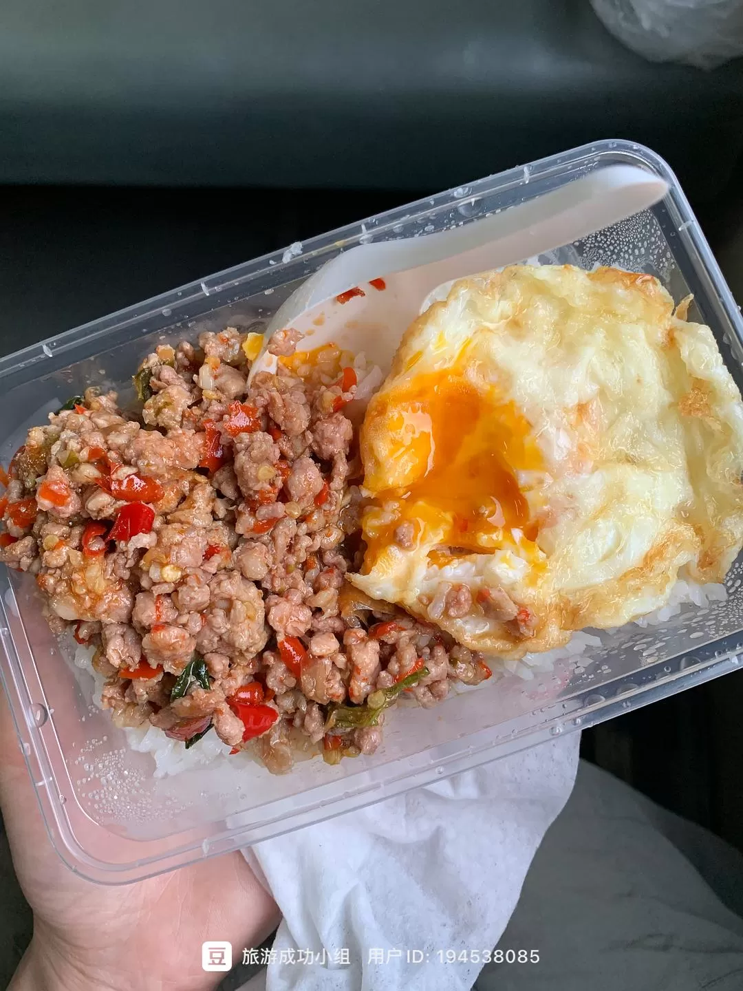 上了车有人来售卖饮料饭菜,买了这个应该是打抛饭?