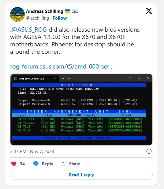 最新的 AGSA(AMD 通用封装软件架构)更新包括对 Phoenix (PHX)芯片的支持,这是AMD的Zen4/RDNA3 APU,主要用于笔记本电脑、迷你电脑和掌机系统。AMD 现在正在将这项技术扩展到 Ryzen 7000G 系列的台式机 AM5 插槽。新的 AGESA 更新似乎已经与这些 CPU 兼容。