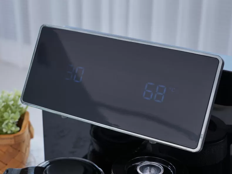它整体的线条干净利落,比较突出显眼的大屏更是完全没有那些俗气的花纹,看上去简洁大方还带着满满的科技感。配合沉稳简约的机身设计,让人一时无法和传统饮水机、茶吧机联系起来,搭配在房间里使用真的是相当出彩~