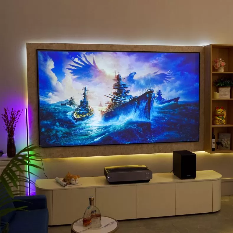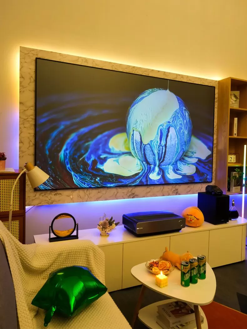海信75L5G激光电视拥有超薄的外观设计,屏幕厚度仅为2cm,非常适合贴墙安装,能够与家居环境完美融合。这不仅节省了空间,还为用户提供了更加宽广的视觉享受。无论是放在客厅、卧室还是办公室,都能够轻松搭配,营造出时尚而舒适的氛围。