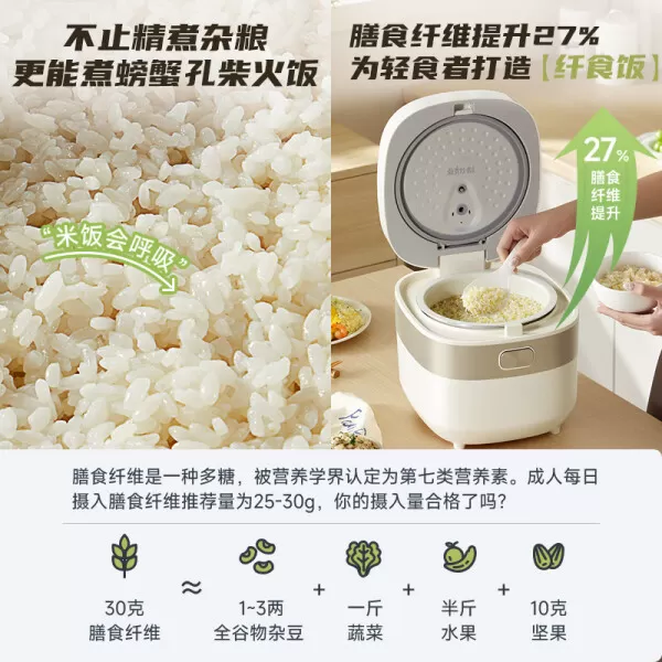 总的来说,小熊DFB-D40N1电饭煲凭借其真微压技术、快速烹饪、多功能设计以及人性化操作等特点,在电饭煲市场上具有较高的竞争力。它不仅让煮饭变得更加简单快捷,还能煮出口感极佳的美味佳肴。如果你正在寻找一款高性能、实用便捷的电饭煲,小熊DFB-D40N1绝对是一个值得考虑的选择。
