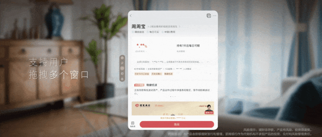 多窗分屏:新增多窗分屏功能,支持用户拖放多个窗口,大视野实现边查账边转账、横向对比多只产品等。