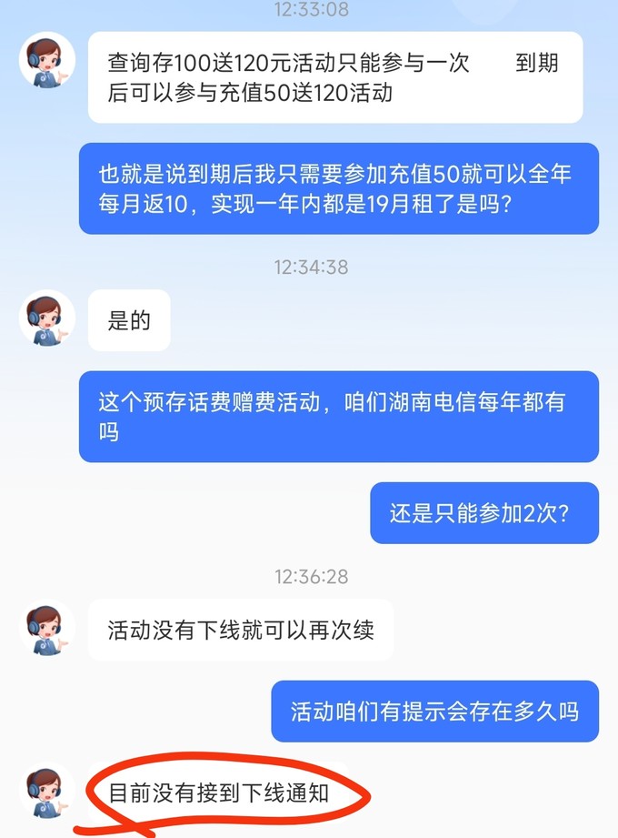 ?省内版可以通过每年参加1次冲50送120的活动实现长期19。(首年冲100)(目前唯一长期19的套餐,省内版必须收货地是湖南本省,不过目前没有添加激活定位,而且是自行激活,相信懂的小伙伴应该懂我是什么意思)