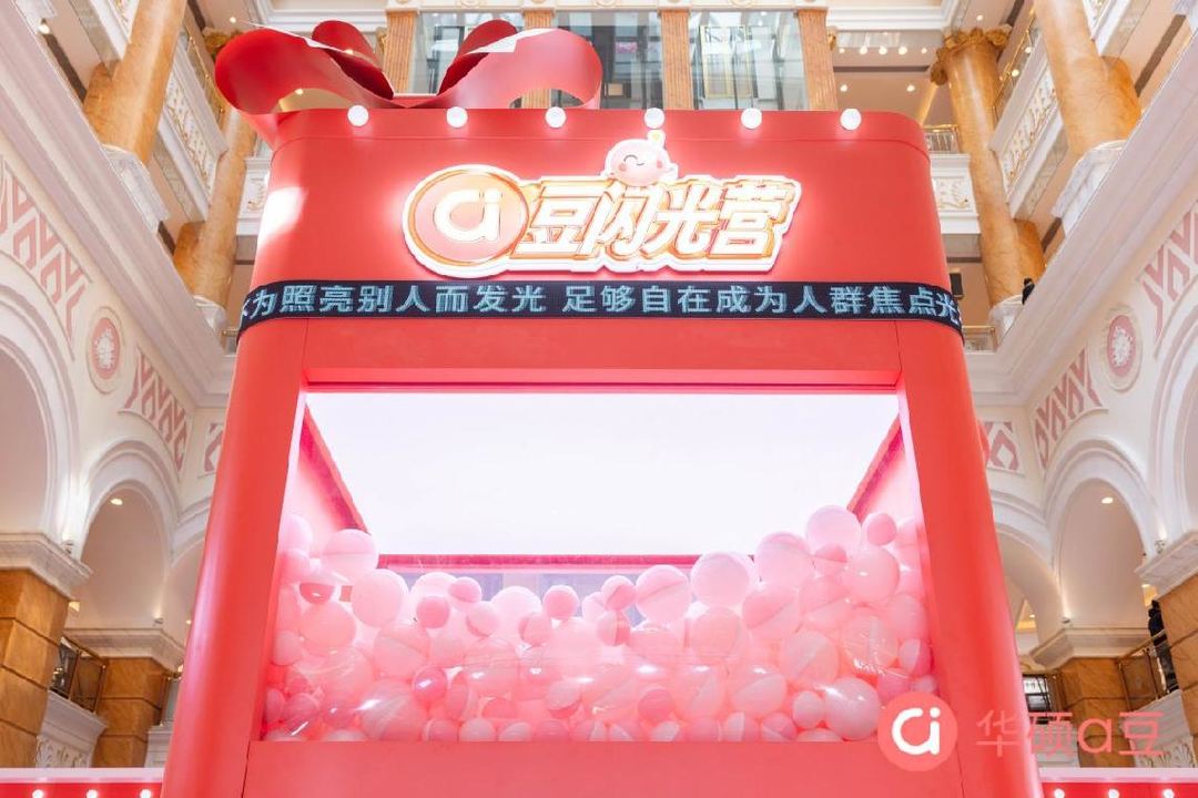 a豆闪光营快闪店打造了一个少女心爆棚的粉红世界,在这个沉浸式体验空间内设置了多个打卡站点,充满了趣味与创意。
