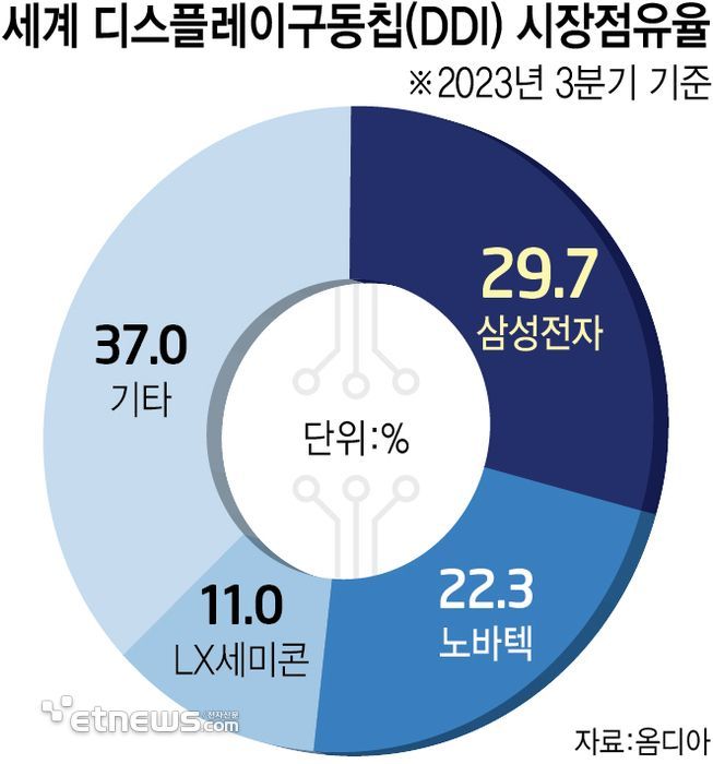 目前在 DDI 市场,三星是该行业第一名,截至去年第三季度,三星电子 DDI 的市场份额为 29.7%。