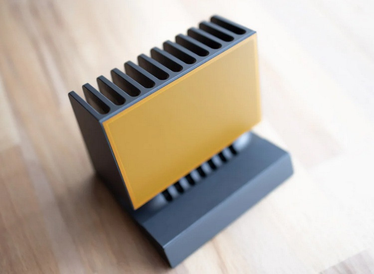 他给新 M3 MacBook Air 配了个独特的散热底座,叫 DHCR 导热垫,可以让笔记本竖置放,它能与机身紧密接触,有大量鳍片、而且位置正好是处理器的位置~
