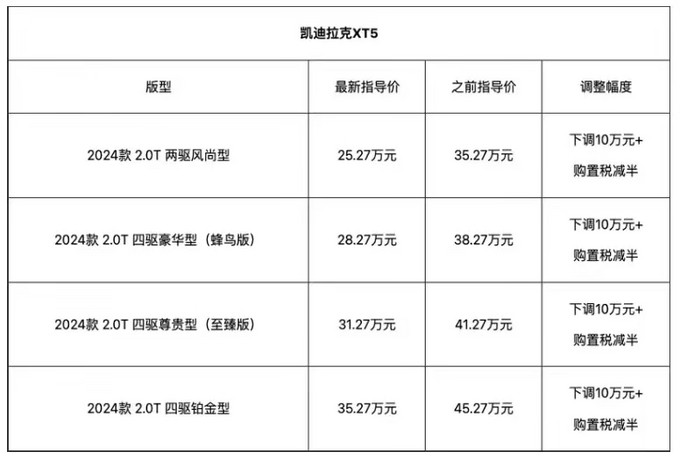 对于此次凯迪拉克官方所给出的这一波XT5指导价下调10万元的优惠政策,个人觉得〈b〉:一是受当前汽车市场竞争压力大的原因所影响,毕竟别家车企都在降价,凯迪拉克自然也是不降不行。另一个则是由于现款凯迪拉克XT5车型自从2016年上市至今,也已经走过了长达8年的时间,所以也是时候要进行换代了。