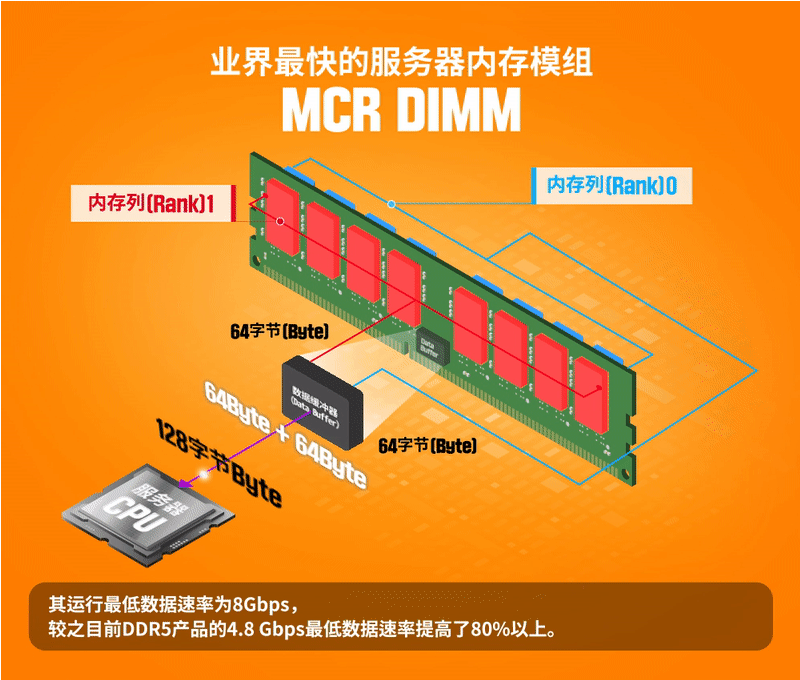 IT之家注:MCRDIMM 全名为 Multiplexer Combined Ranks DIMMs(多路合并阵列双列直插内存模组),将多个 DRAM 组合在一块主板上,能够同时运行两个内存列(Rank,模组处理信息的基本运行单位),提高内存的速率。