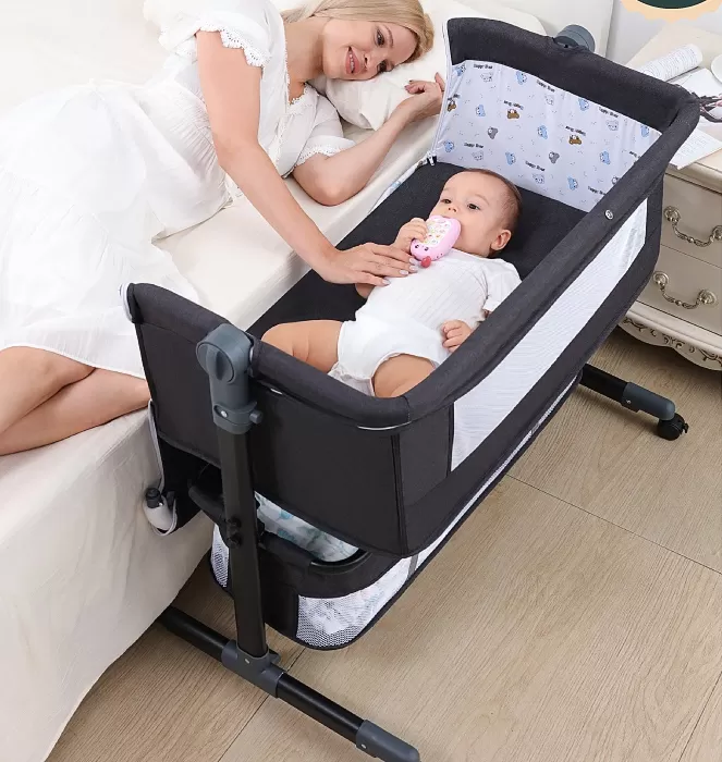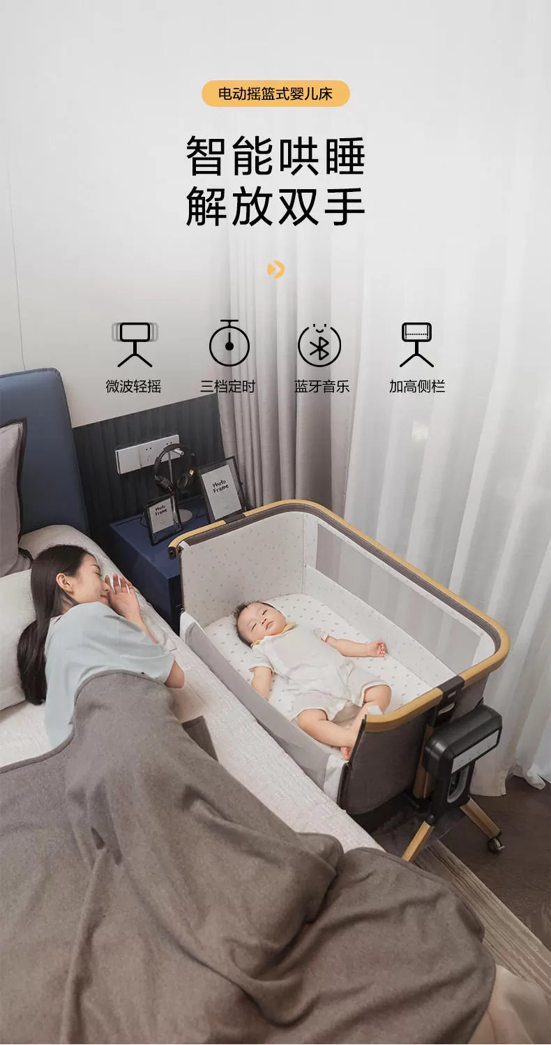 这款婴儿床设计非常人性化,为了能在夜晚方便宝妈们照顾宝宝,可以和大床无缝拼接,方便妈妈和宝宝不同的睡眠需求。 与大床拼接有种模式:开放拼接、防滚拼接和安全防护拼接模式,让宝宝和爸妈想怎么睡,就怎么睡!