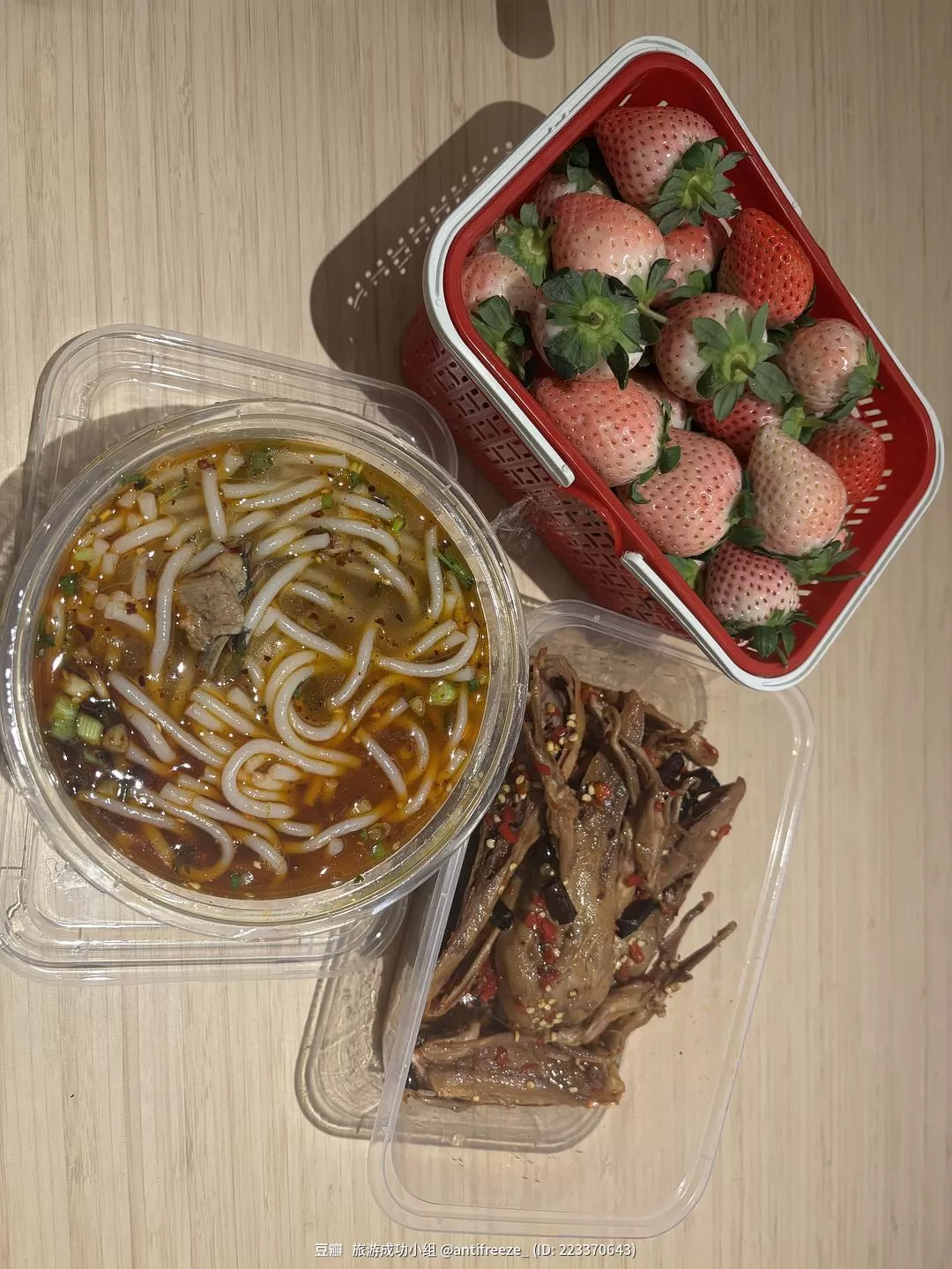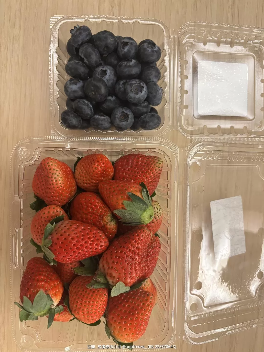 饭后水果是蓝莓和草莓,现在正是草莓的季节,便宜又很香甜~(5分!5分!)