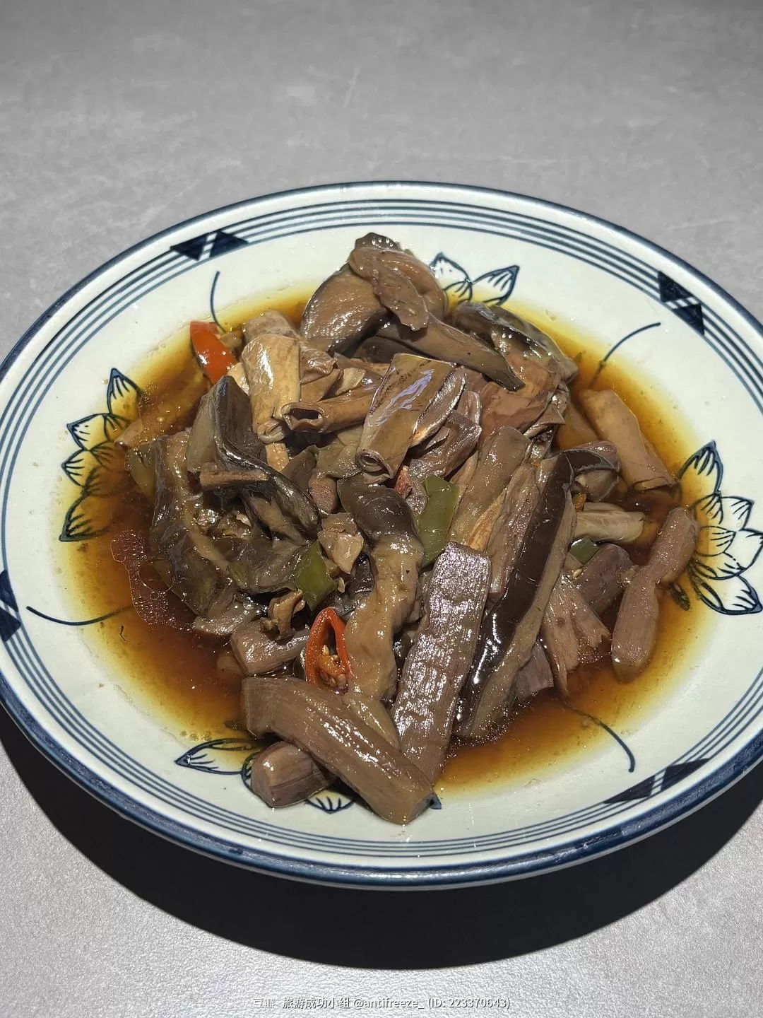 一道时令菜,茄子和什么什么花,很软糯,适合拌饭吃。(4分)