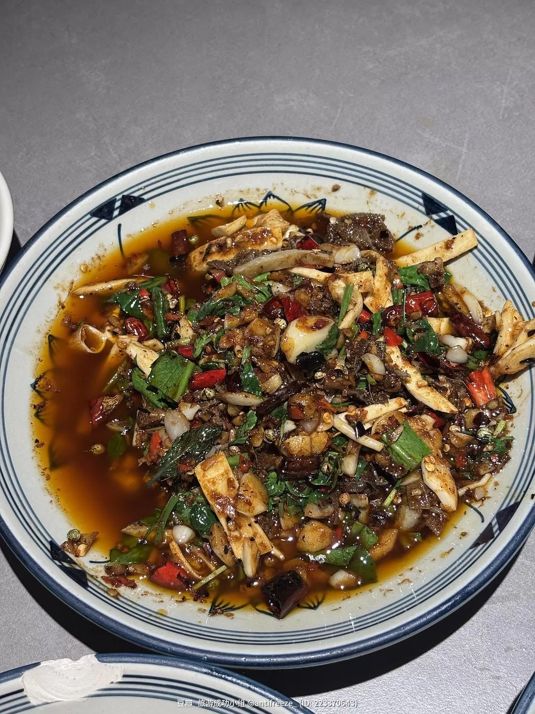 木姜子炒黄喉和肚丝,最爱这道菜!黄喉脆脆的,木姜子很有风味~5分5分!